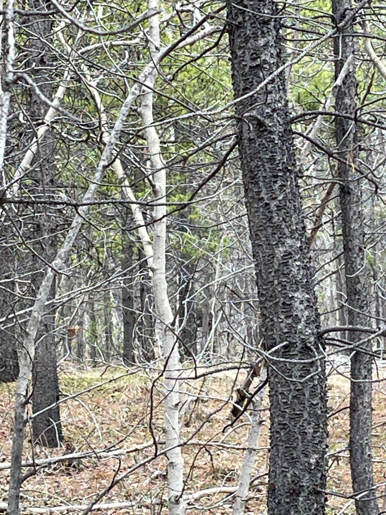 The sun came out briefly so I went on an adventure with the bear spray and a rape whistle (for scaring bears?) in tow. I didn’t see any bears but came across a big moose in the woods. Not wanting to get too close, my picture is weak but at least I lived to tell the story.