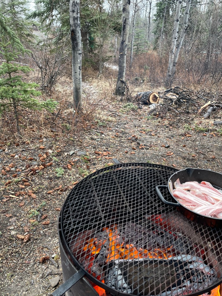 He made dinner and we both had a couple drinks and chatted until 1:30 or so in the morning before going to bed for the night. In the morning, we had breakfast and he eventually went back to Whitehorse but said that he might return later that night. He left some of his things just in case, including bear spray for me to take on my hike once he left.